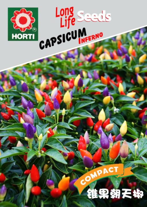 One of the best ornamental peppers and attractive pot plant for house decoration. They are edible fruits, neatly cone-shaped 2 – 3 cm long, changing colours from creamy-white to orange to deep rich red at maturity on dwarf bushes.