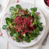 Lamb’s Lettuce is a small annual plant that is eaten as a leaf vegetable. Grows in a low rosette with spatulate leaves, that is eaten as a leaf vegetable. Delicate, nutty flavour, dark green colour, and soft texture, and is popularly served as salad greens. Lamb’s Lettuce. Also known as corn salad or mache, like other formerly foraged greens, corn salad has many nutrients, including three times as much vitamin C as lettuce.