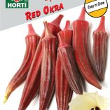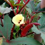 Stunning deep red stems and red-veined green leaves, and deep-red pods make this variety one of the best plants to choose for edible landscaping. Yellow, hibiscus-like blooms are loved by bees and produce 2 – 5 inches long torpedo shaped, delicious and tender pods. When cooked, however, the red colour disappears and the pods turn green. Raw red okra adds a colourful touch.
