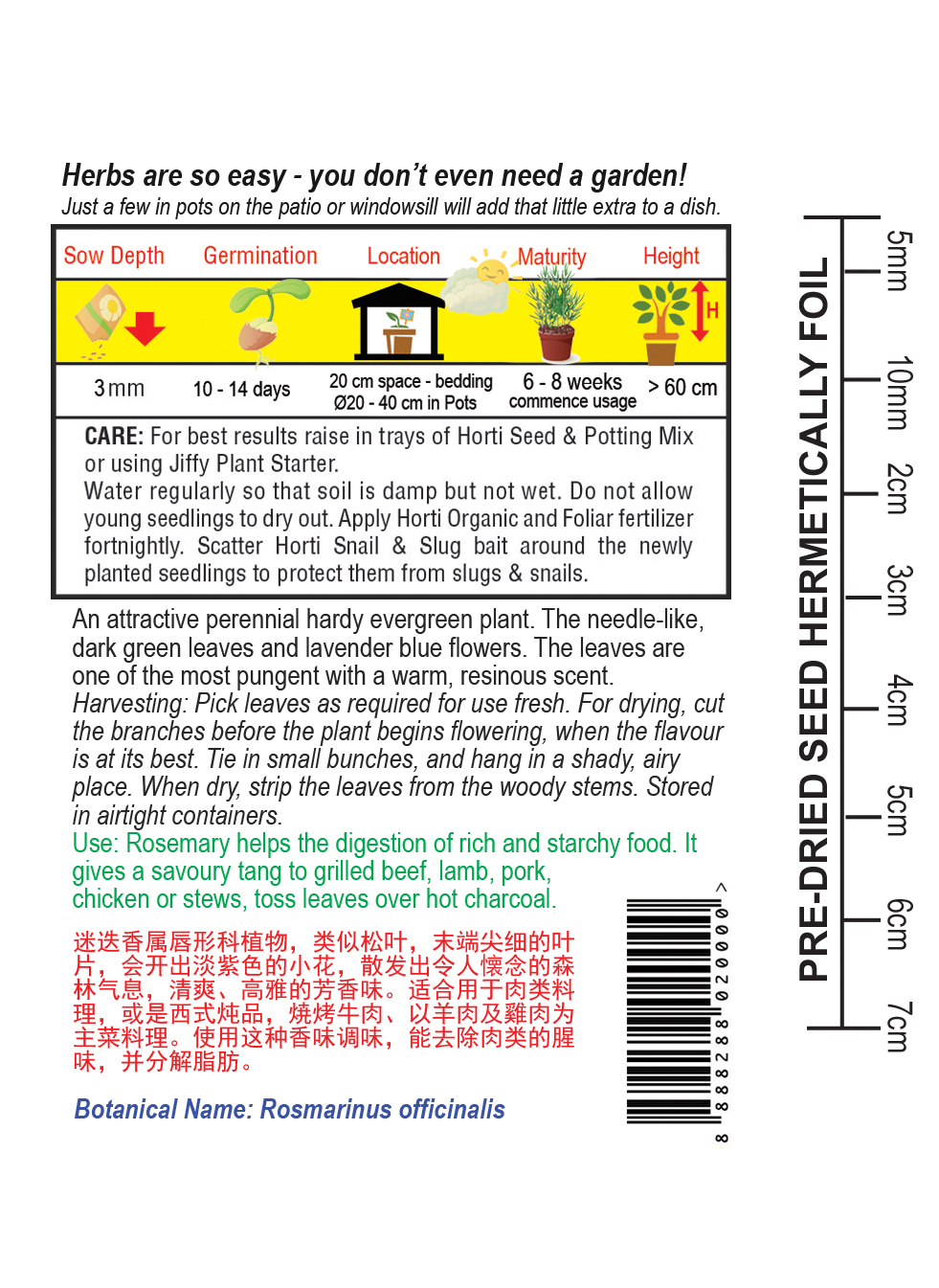 Use: Rosemary helps the digestion of rich and starchy food. It gives a savoury tang to grilled beef, lamb, pork, chicken or stews, toss leaves over hot charcoal.