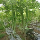蛇瓜葫芦科一年生蔓性草本植物。果实长条及扭曲似蛇状,果皮乳白浅绿略有青色纵纹。栽培容易,性喜高温,耐湿性颇强。必须立枝柱或棚架使其攀缘,成熟时在瓜的先端吊一小石以防瓜条扭曲,引导垂直细长,使果体正直。