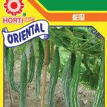 The gourd grows naturally in a long, narrow, twisted fashion; quite often, however, a stone is tied to the end of the young fruit to help it grow straight and presumably longer. The skin is usually chalky white with irregular stripes.