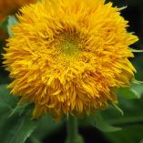 A remarkable dwarf growing variety. A quick flowering showy sunflower with large fluffy double golden yellow blooms on branching sturdy plants.