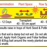 SOWING: Sow direct 3 to 4 seeds at about 50cm spacing and at the depth of 5mm. Cover with Seed & Potting Mix. Thin out to 1 or 2 plants per spacing. Tomatoes can also be sown in Jiffy. When the roots of the plant start to emerge through the Jiffy, place the whole Jiffy and plant, into its permanent position.